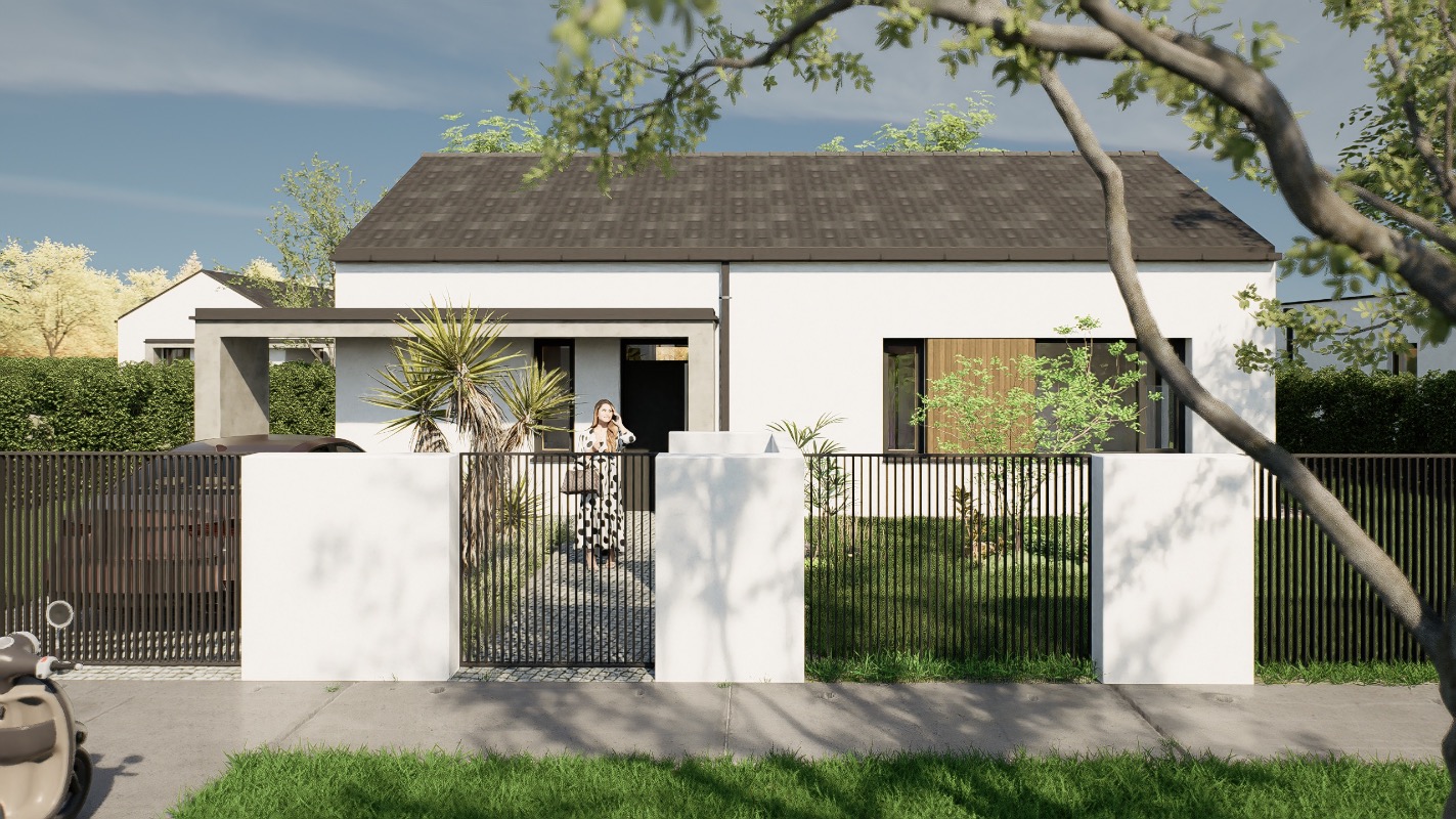A megadott értékesítési ár a kerítés, térkövezés, parkosítás, esővíz szikkasztás díját nem tartalmazza. A homlokzat dörzsölt színvakolat, a látvány képeken szereplő falburkolat felár ellenében kérhető.